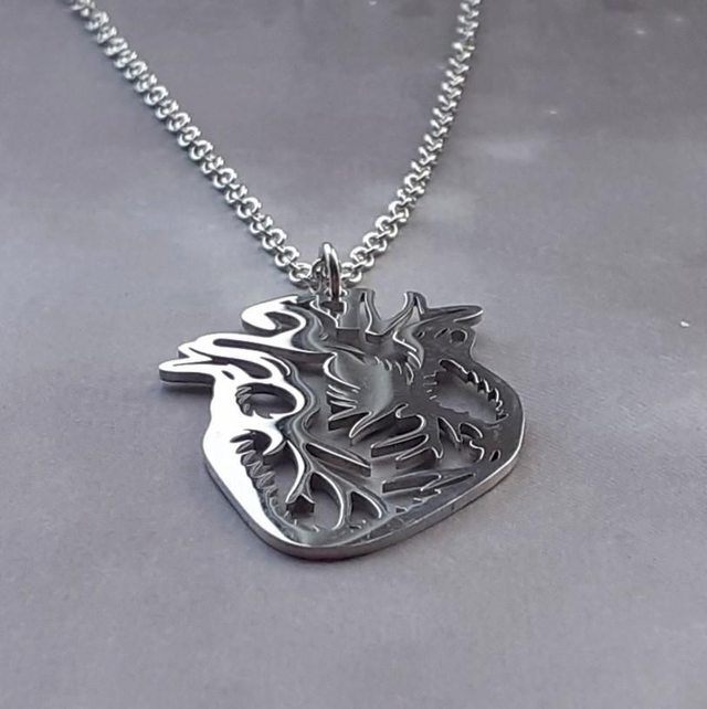 The heart is approximately 2.5cm wide and 3.75cm long. It is hung from a simple ring, and threaded onto a stainless steel chain.