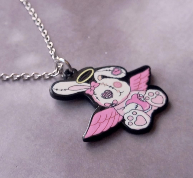 Angel bunny acrylic necklace. This design is double sided.