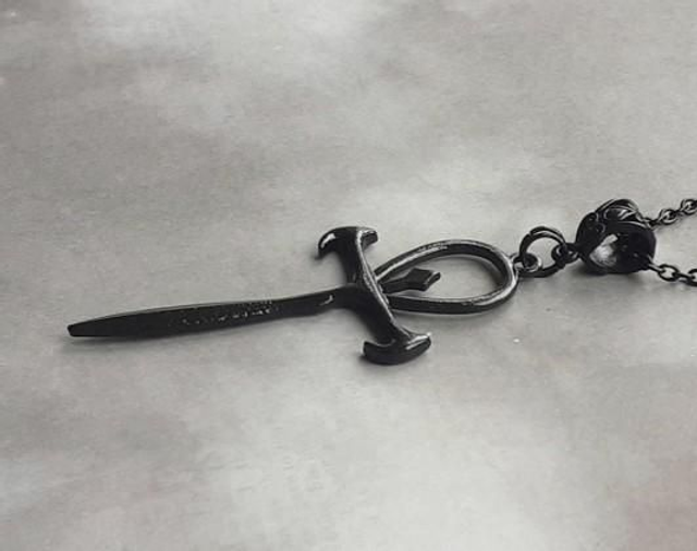Large black metal ankh necklace.