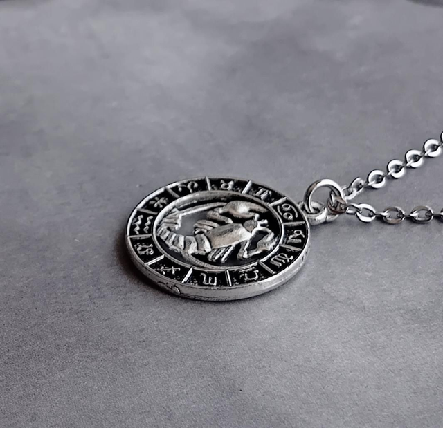 Cancer circular metal necklace.