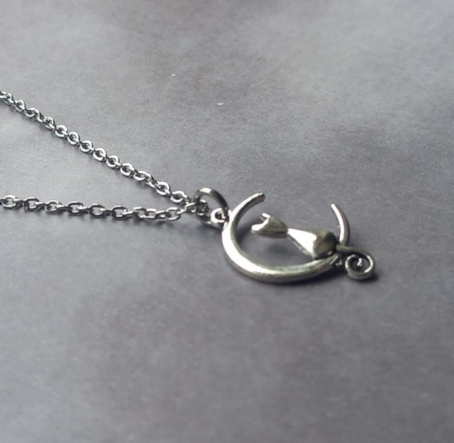 Metal moon and cat necklace.