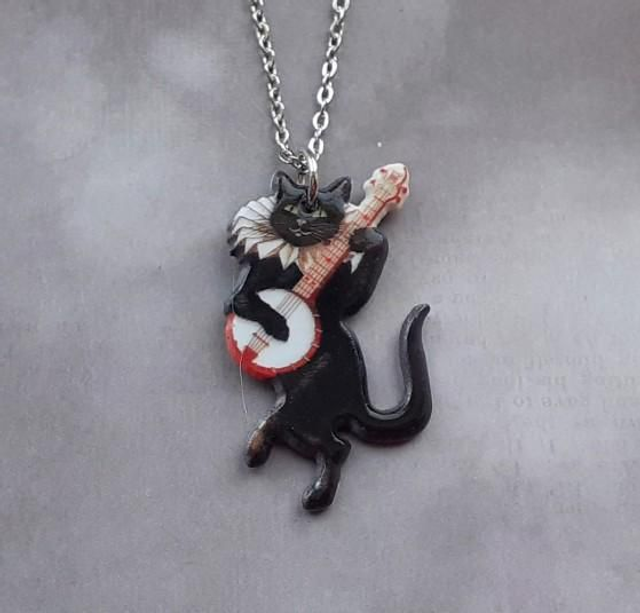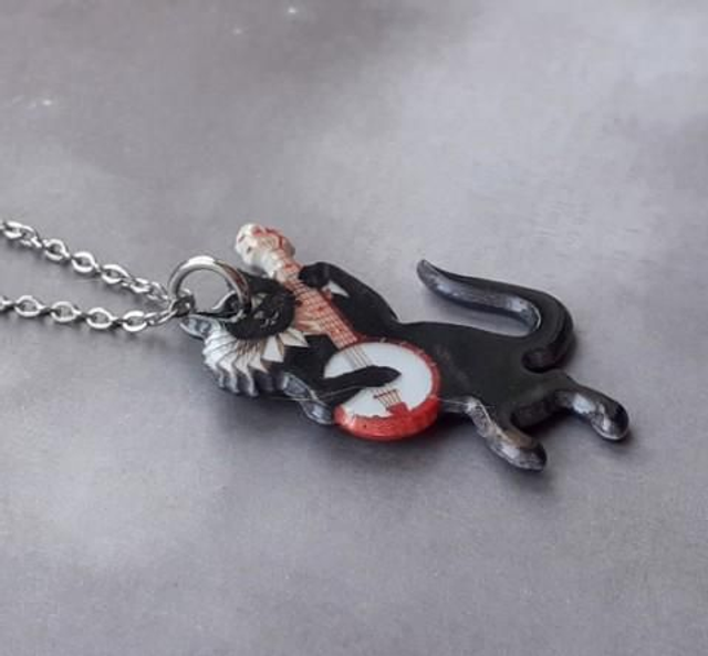 is approximately 2.5cm wide and 4.5cm long. It is attached to a jumpring, and hung from a steel trace chain. It fastens with a lobster clasp.