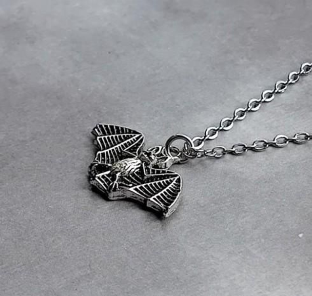 Flying bat metal necklace.