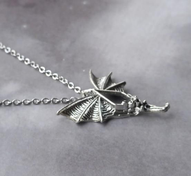 Gothic flying bat metal necklace.