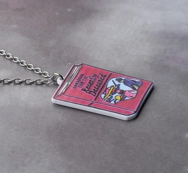 Handbook from Beetlejuice acrylic necklace.