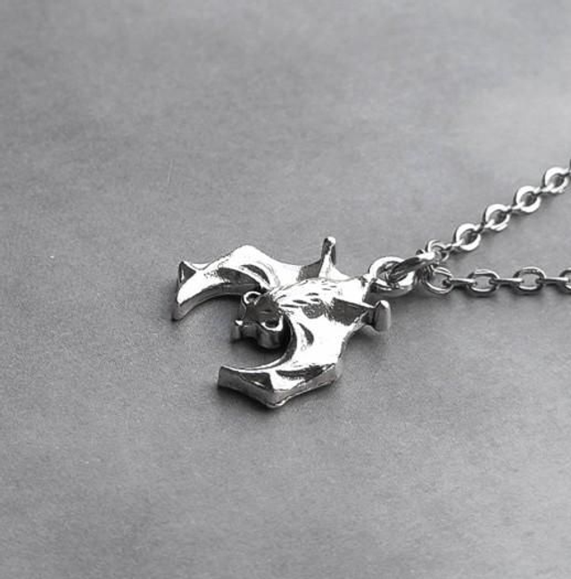 The bat is silver plated metal alloy, approximately 1.5cm wide and 2cm high. It is attached to a jumpring and hung from a stainless steel chain.
