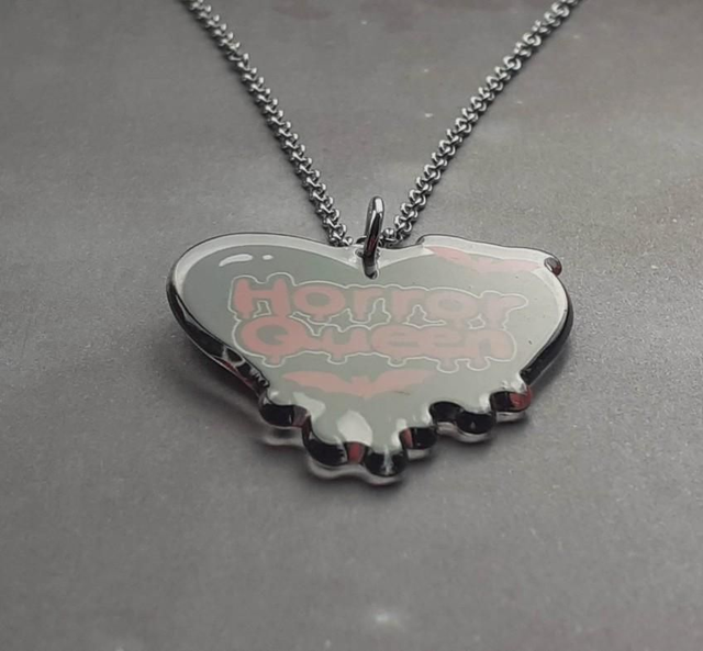 The heart is approximately 3.5cm wide and 4cm long. It is attached to a jumpring, and hung from a stainless steel trace chain. It fastens with a lobster clasp.