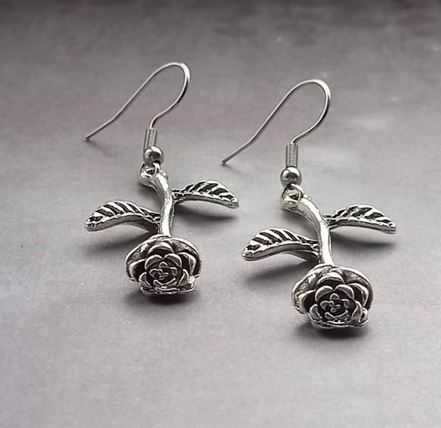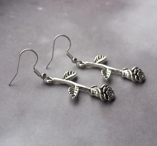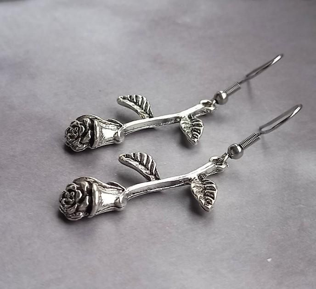 Hanging gothic rose earrings.