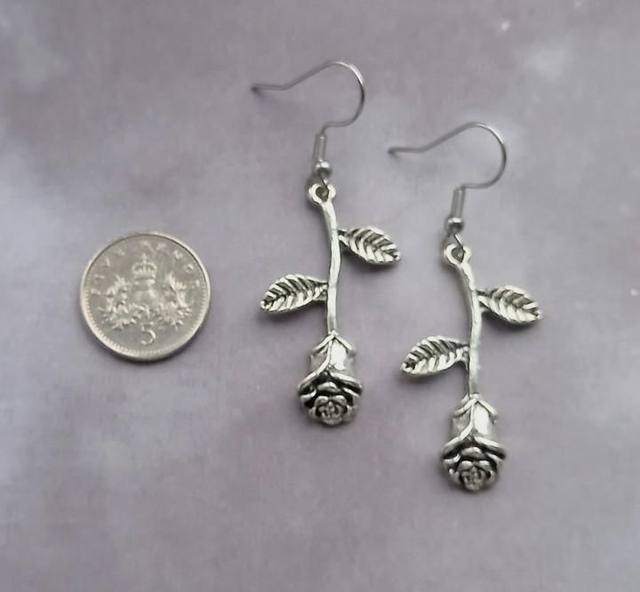 The roses are silver plated metal alloy, approximately 2cm wide and 3.5cm long.