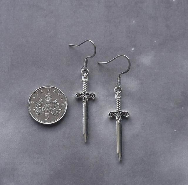 Small patterned metal sword earrings.