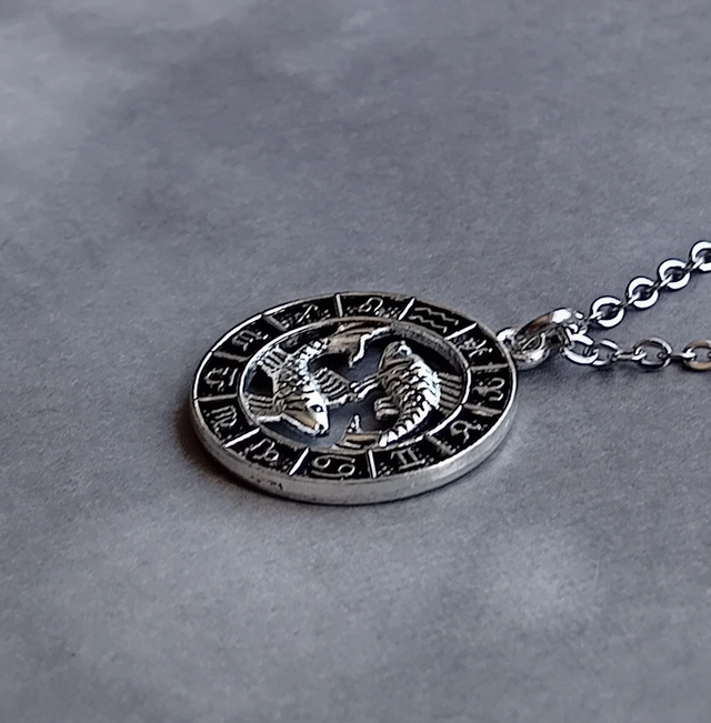 Pisces circular metal necklace.