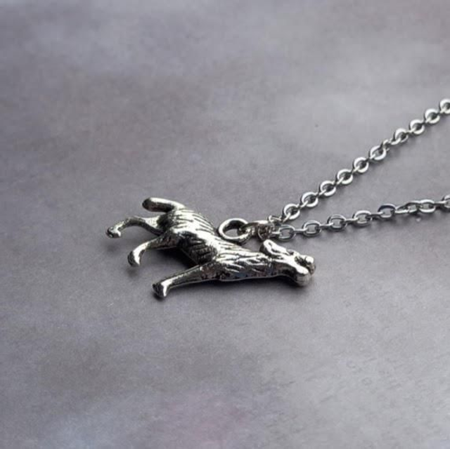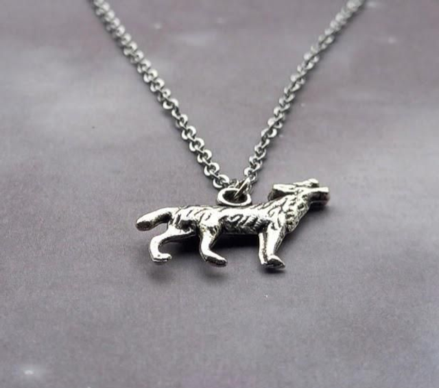 Howling wolf metal necklace.