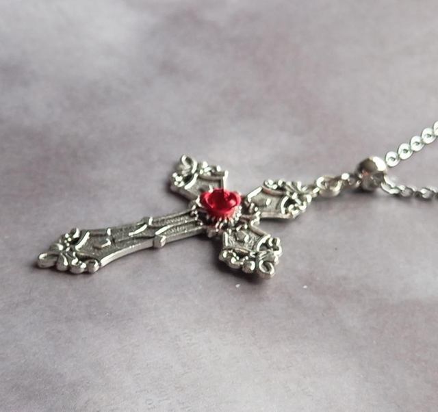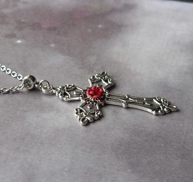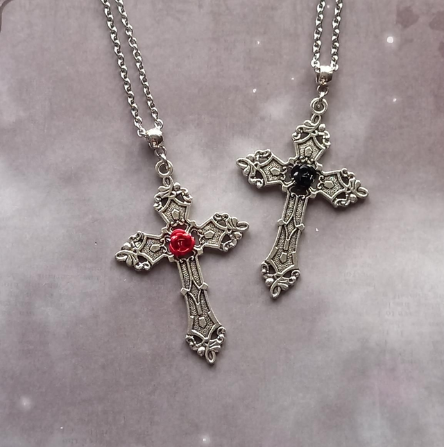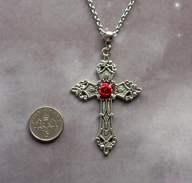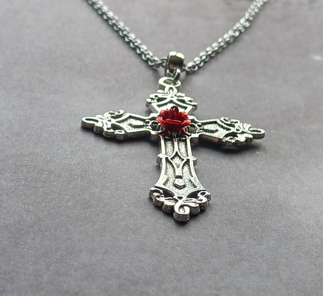 Red Rose Gothic Cross Necklace