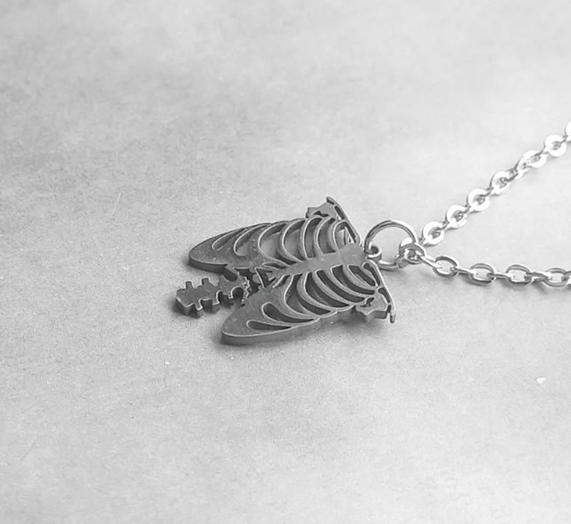 Steel ribcage necklace.