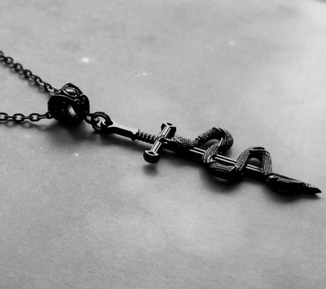 Black sword and snake necklace.