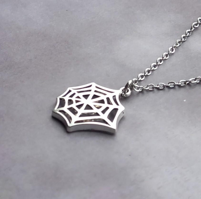 Metal spider web necklace.