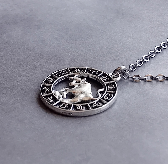 Taurus circular metal necklace.