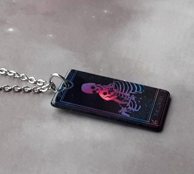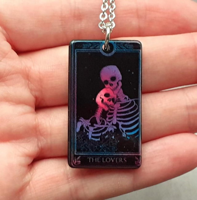 The Lovers tarot card necklace.