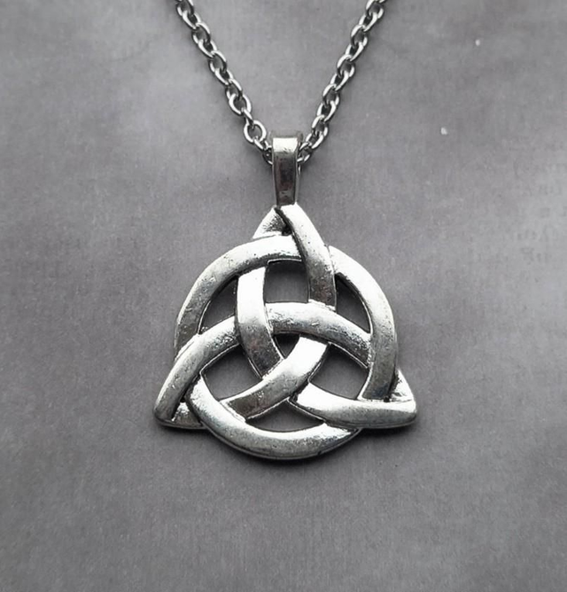Large metal triquetra necklace.